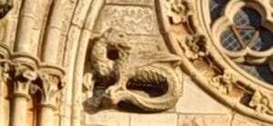 En poursuivant l’ascention de la colline, apparait majestueuse la Basilique au portail magnifique, et un indice significatif : le dragon siège en haut à gauche, signe qu’ici les énergies telluriques (les « veines du dragon ») on été maitrisées.
